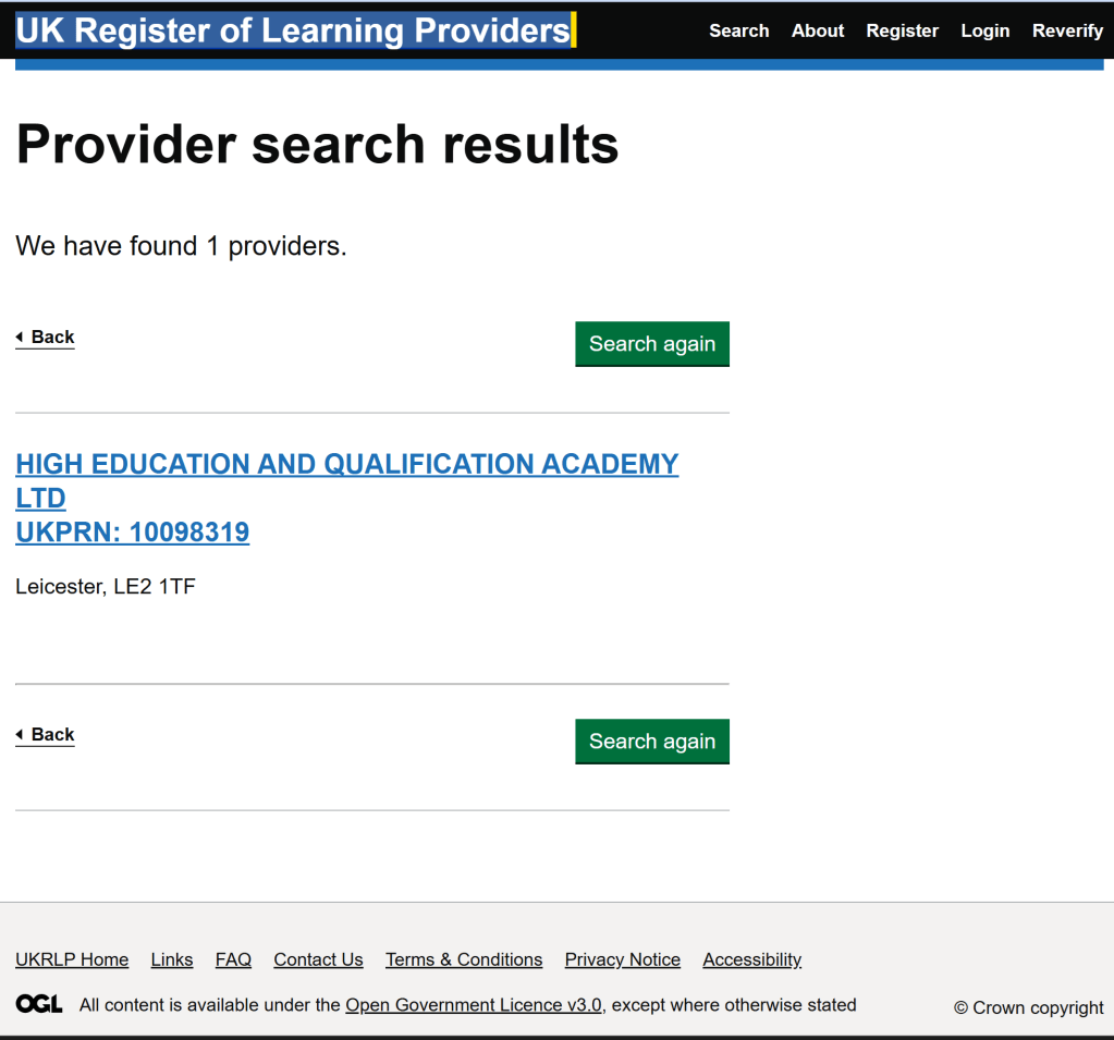 UK Register of Learning Providers